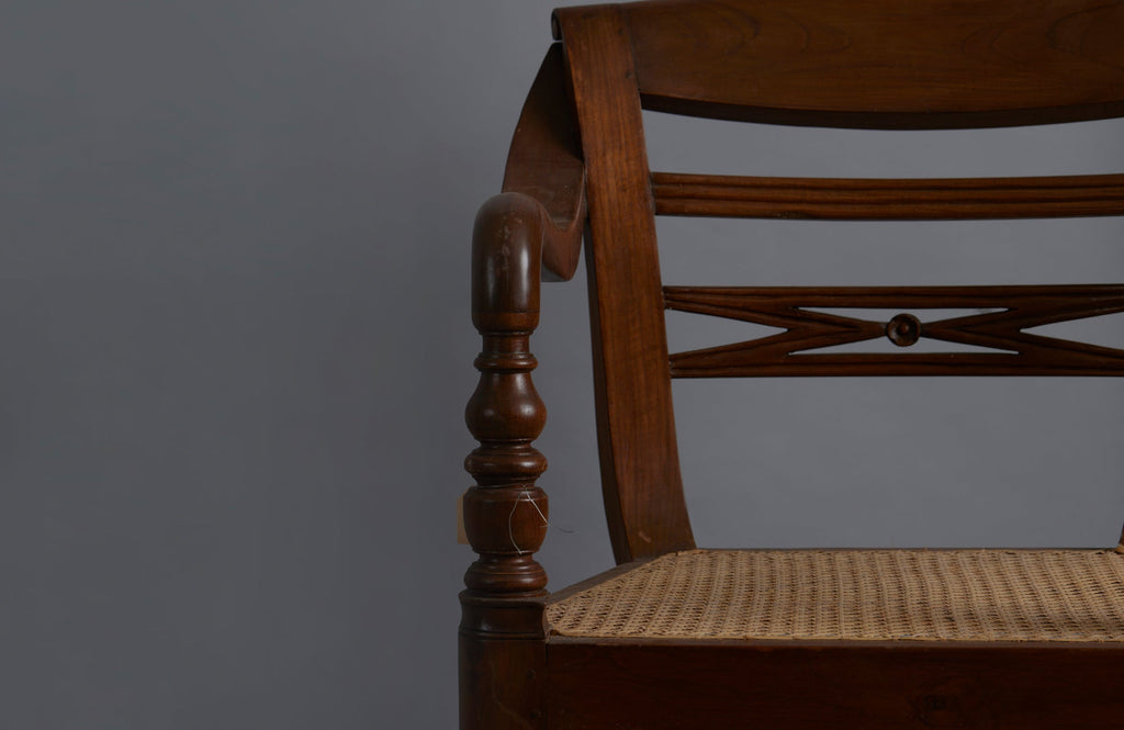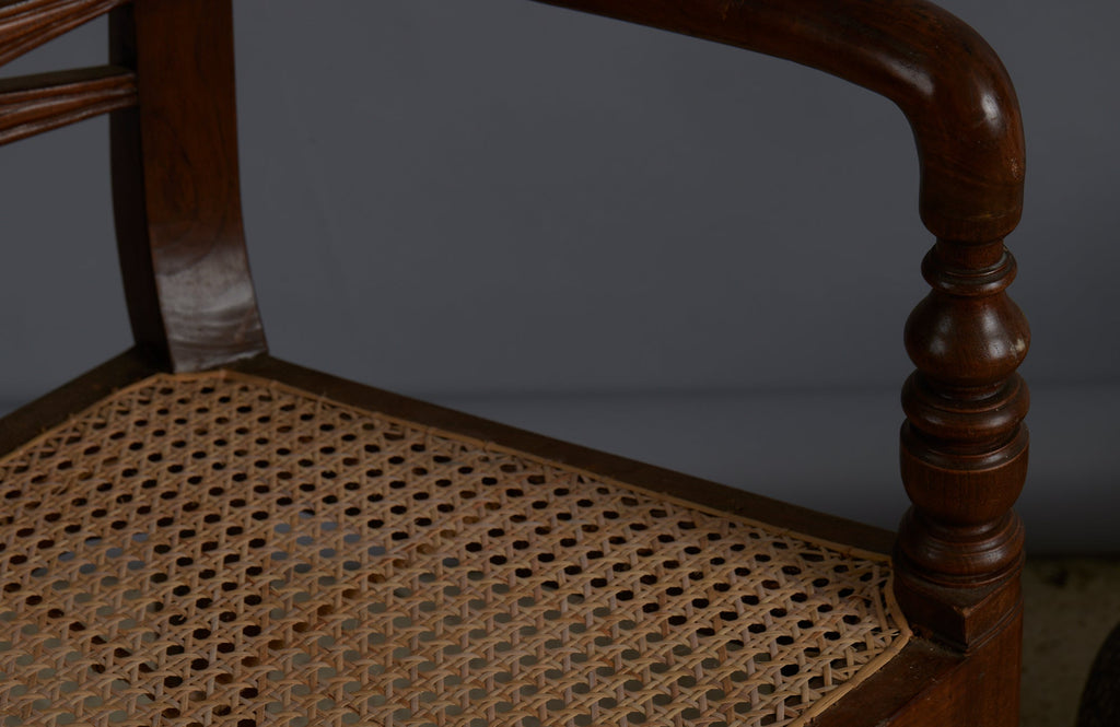Pair of Rolled Arm Dutch Colonial Teak Side Chair with Turned legs and Rattan Seat