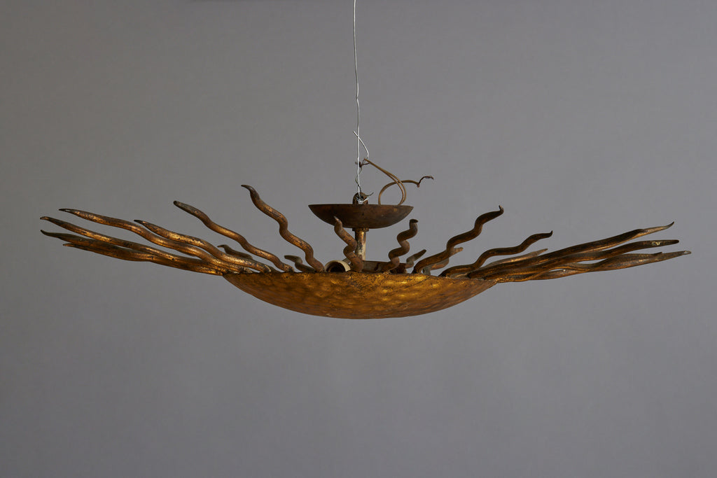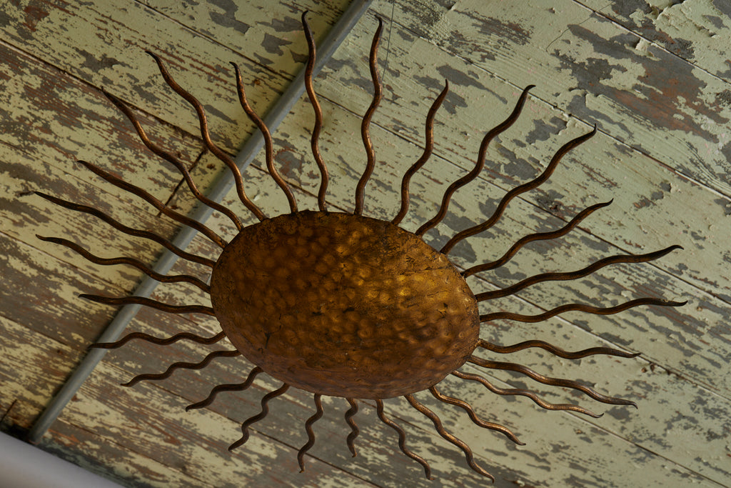 1940s Spanish Gilt Sun Shaped Ceiling Mounted Fixture
