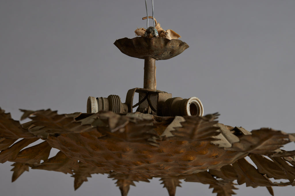 1940s Spanish Gilt Iron Ceiling Mounted Fixture in the Form of a Sunflower
