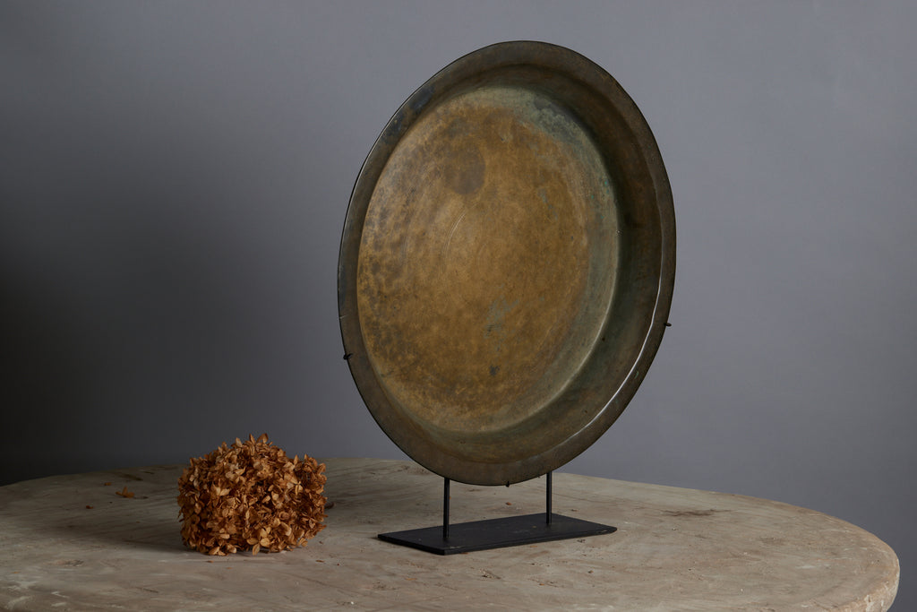 Large 17th Century Mounted Bronze Offering Tray Excavated from the Musi River in Sumatra