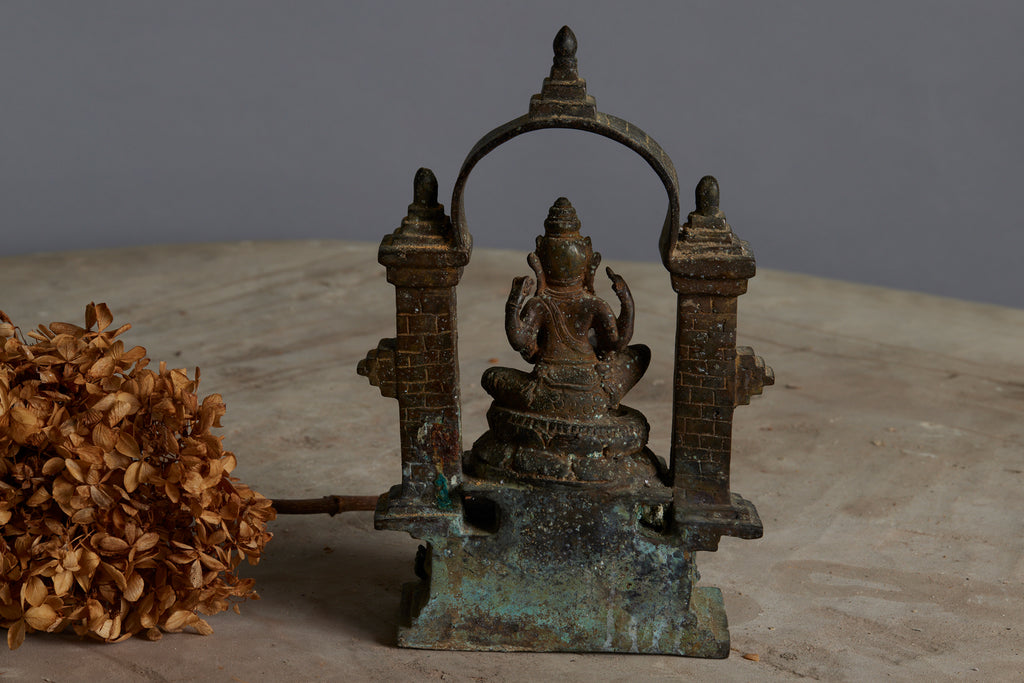 Early Bronze Altar Figure of a Seated Ganesh Underneath a Bridged Arch from Java
