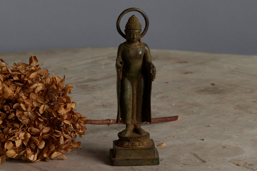 Bronze 16th Century Figure of Standing Buddha with a Halo from Java