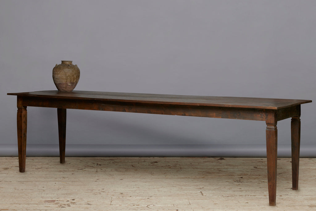 Very Long Dutch Colonial Teak Dining Table with Square Tapered Legs from Sumatra