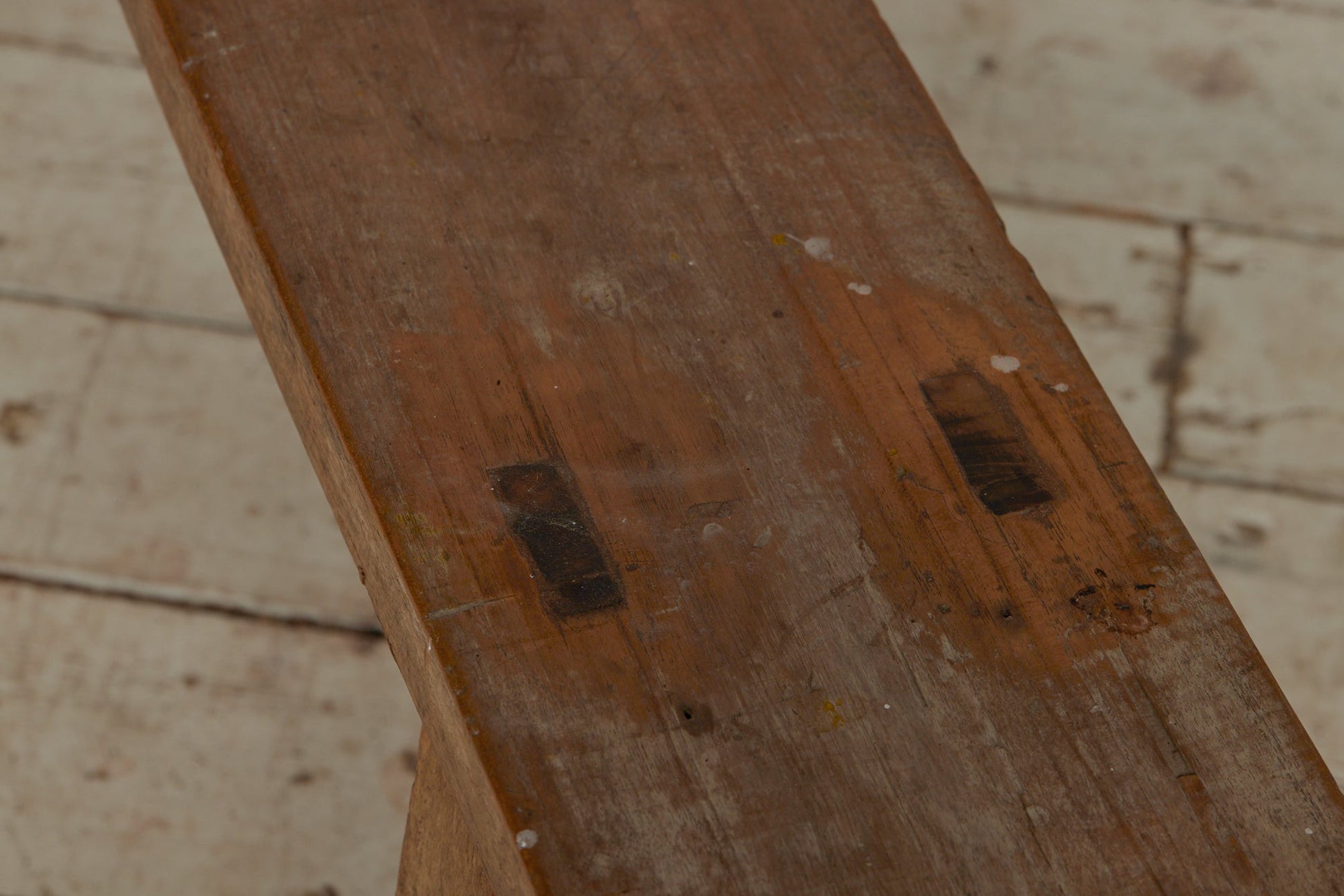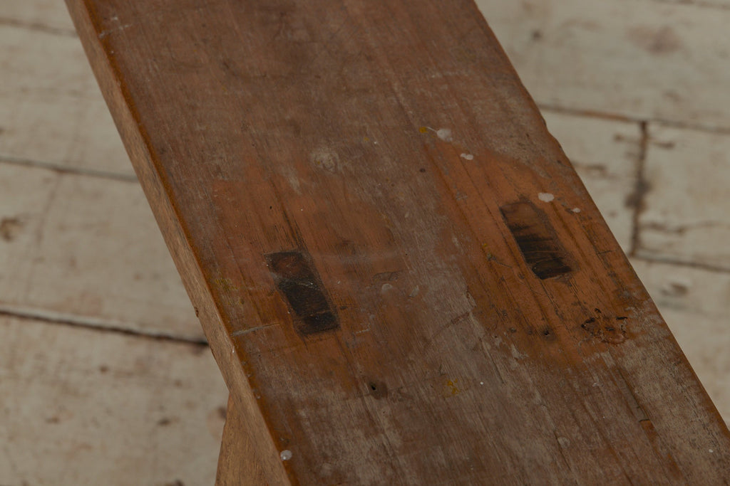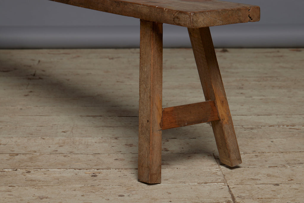 Long Skinny Dutch Colonial Teak Bench with a Stretcher Base from Java