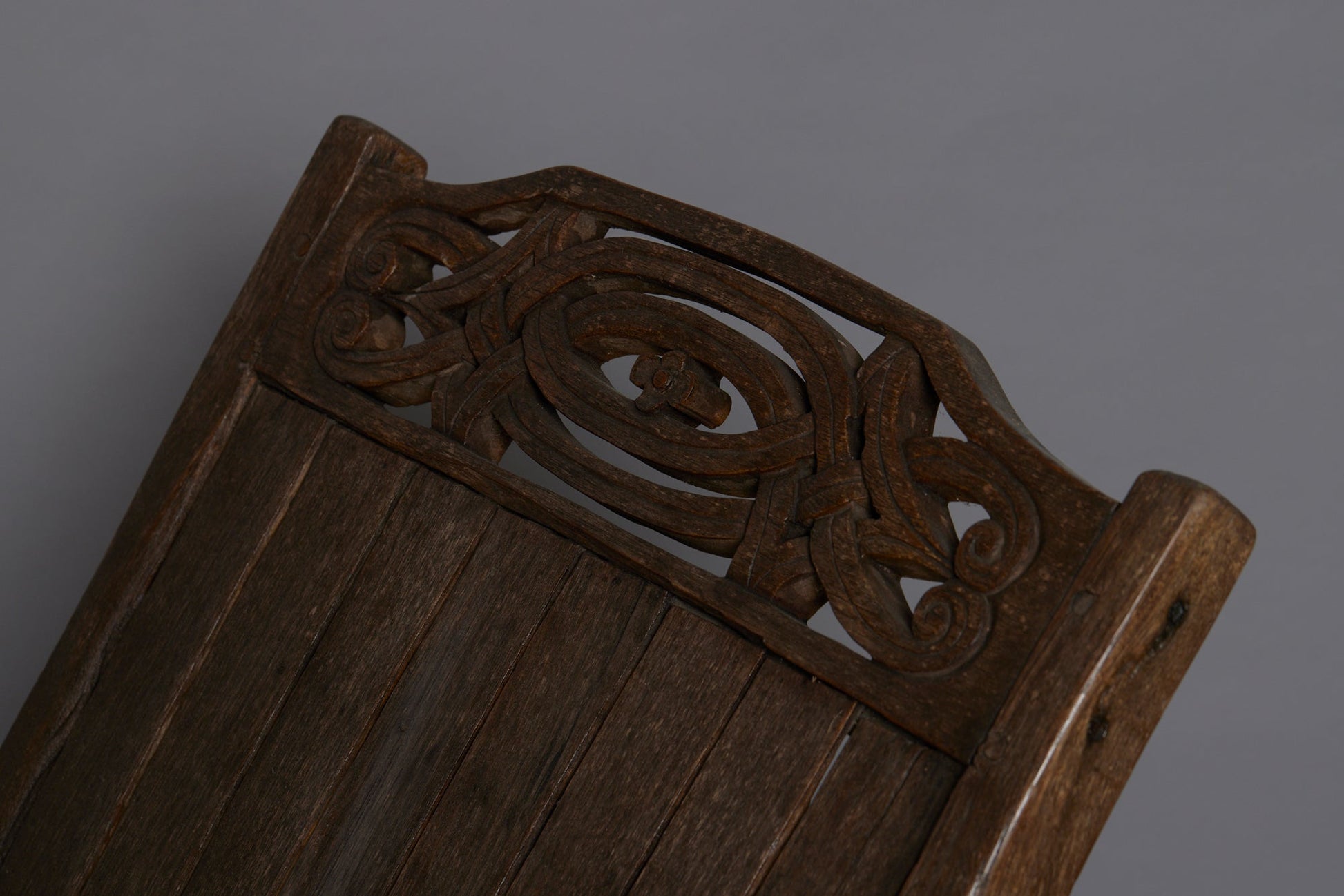Slat Back and Seated 19th Century Teak Lounge Chair with a Carved Foliate Crest