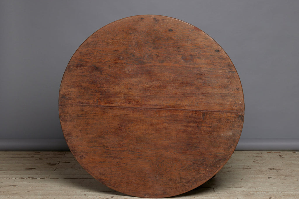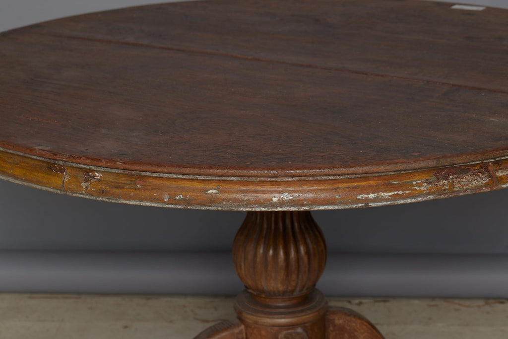 19th Century Two Board Round Top Teak Pedestal Table with a Gadroon Base and Traces of Old Paint