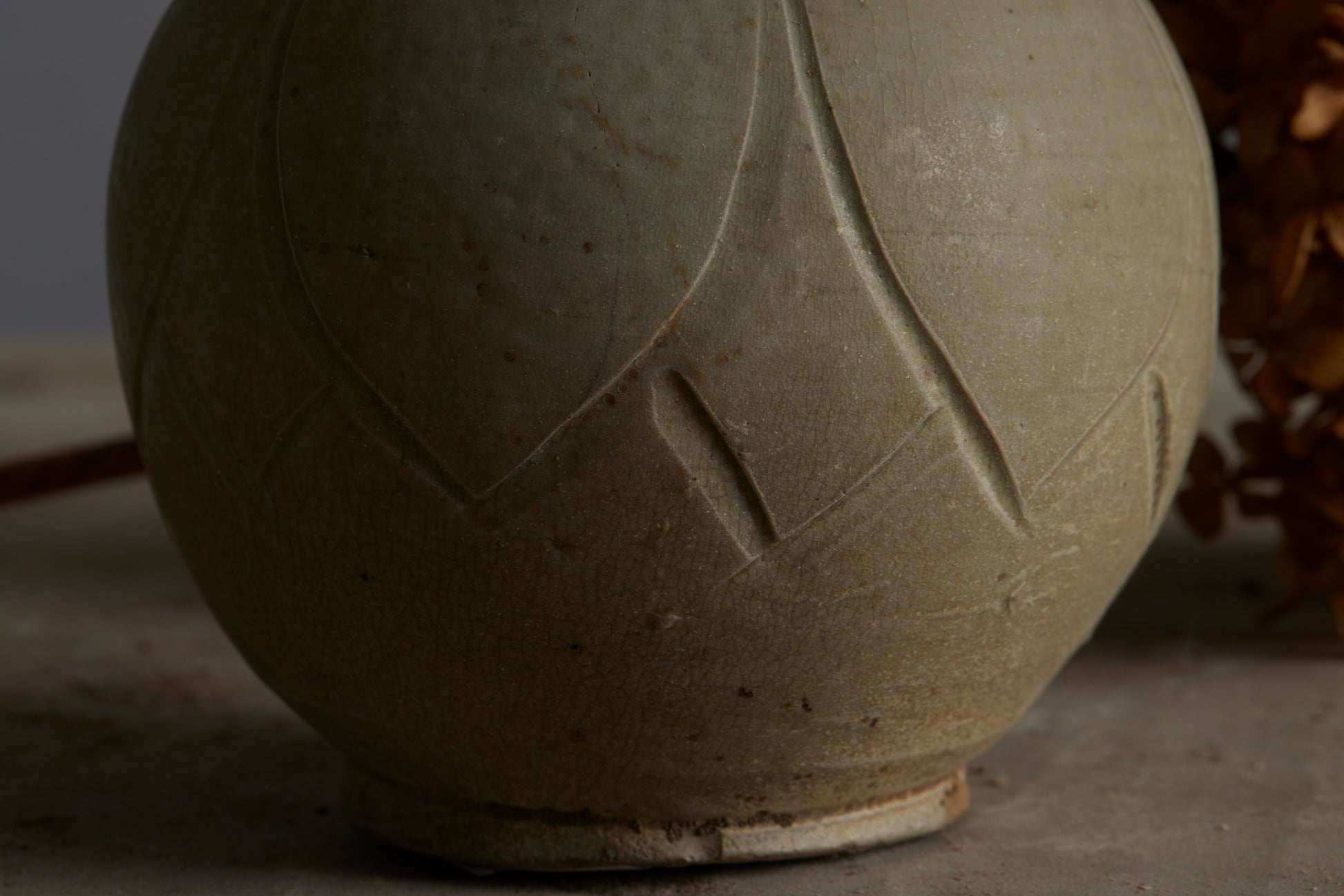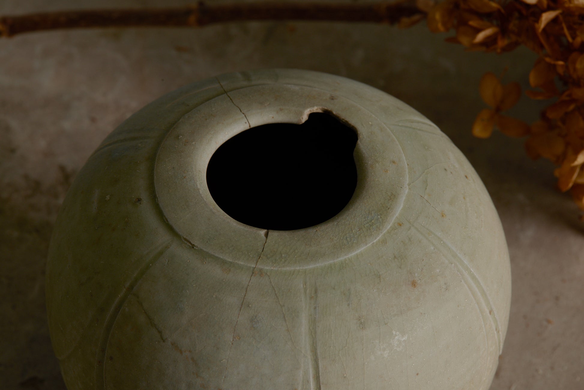 Small Sung Dynasty Pale Celadon Glazed Lotus Bud Vase Discovered in the Musi River Basin in Sumatra with a Small Chip in the Rim