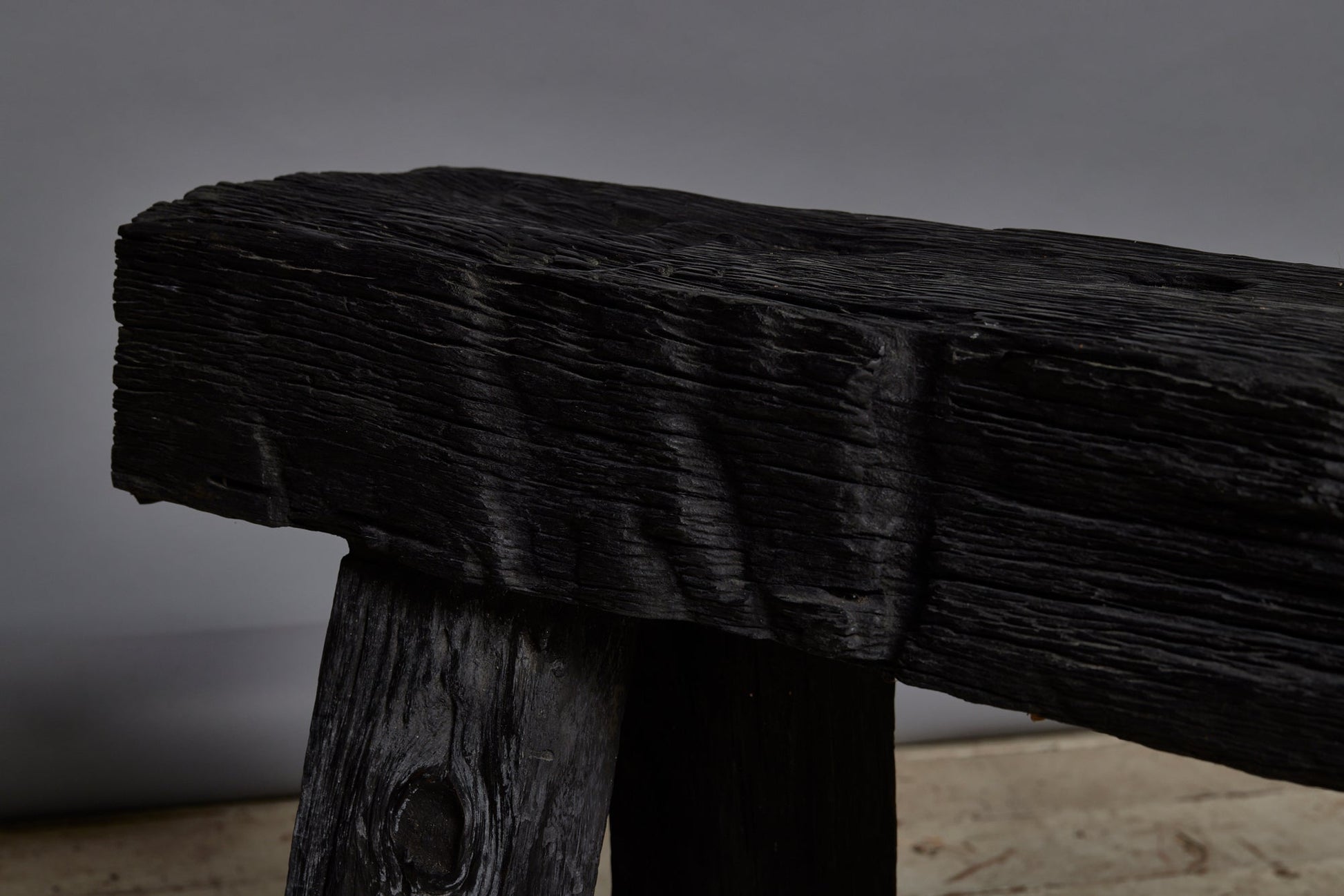 Short Chunky Top Ebonized Teak Bench Made out of a Bridge from Borneo