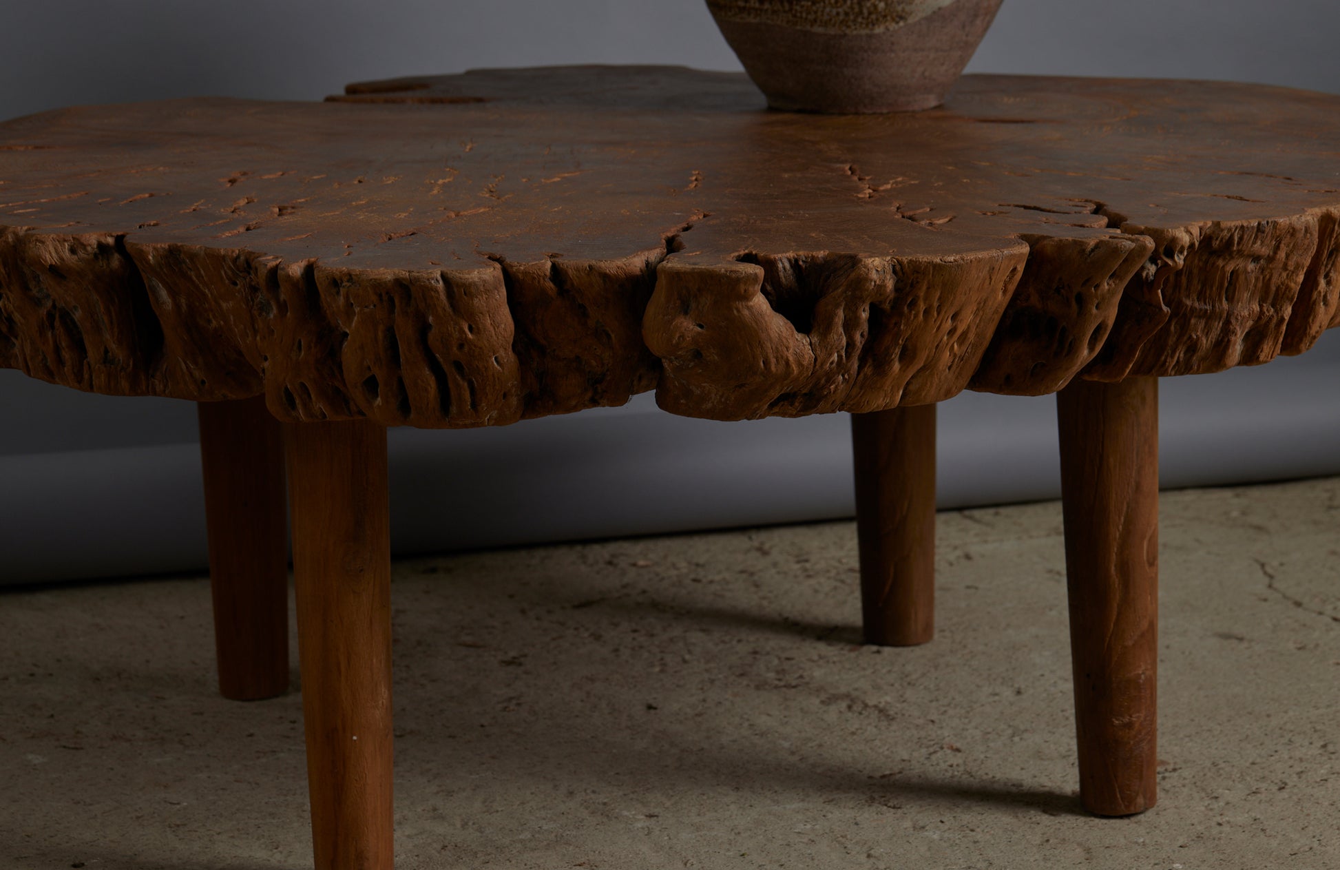 Coffee Table Made Out of an Ancient Slab of Old Growth Teak Mounted on Simple Legs