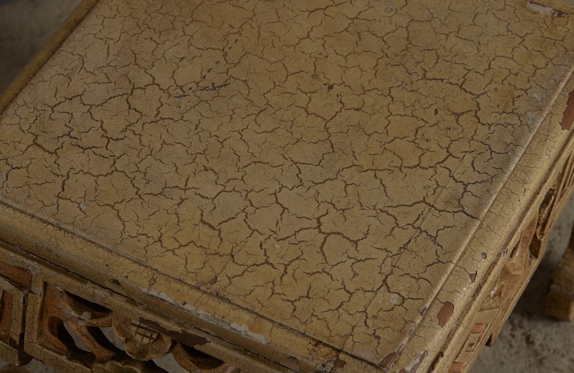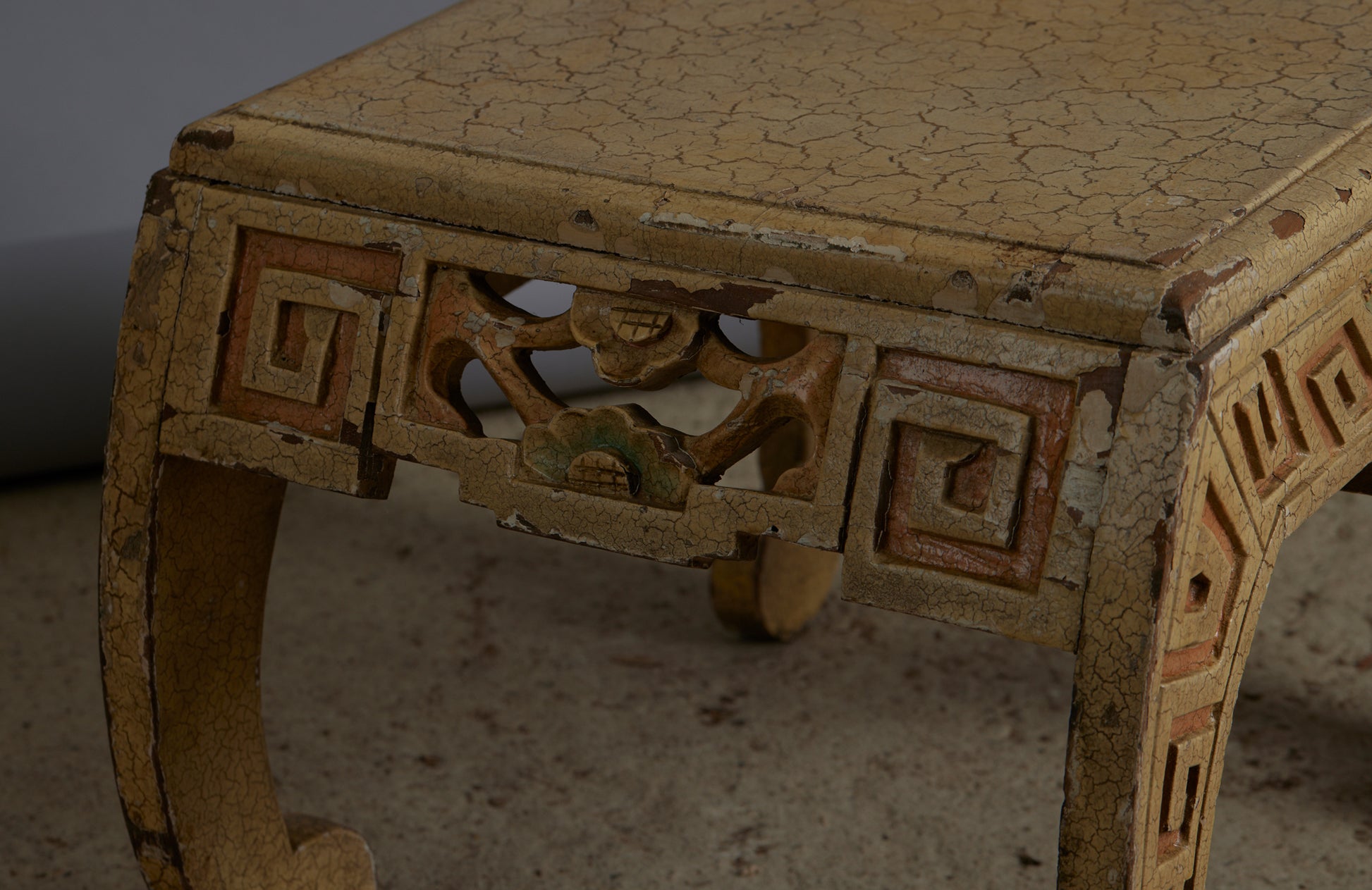 Small Ethnic Chinese Art Deco Stool in Old White Paint