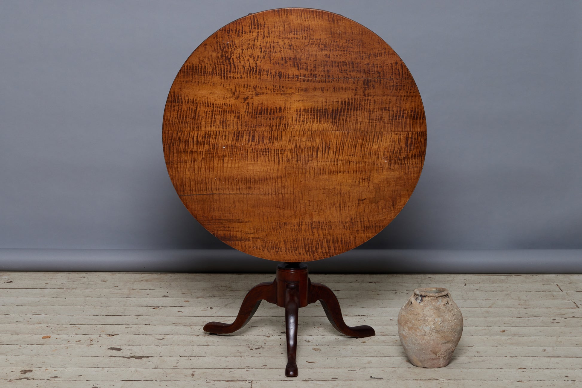 18th Century Queen Anne Tripod Base Tiger Maple Tilt Top Tea Table