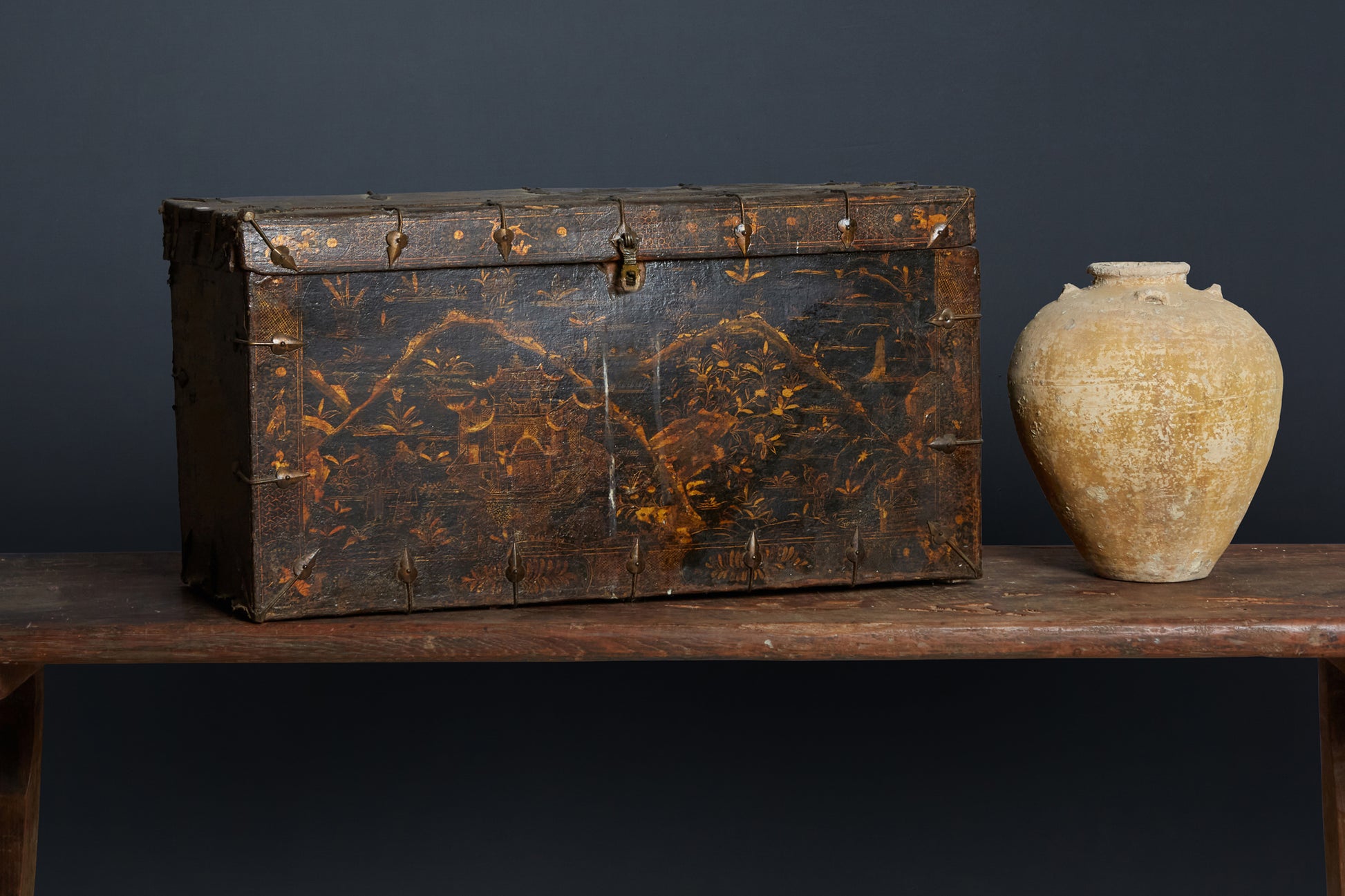 18th Century Tibetan Chest from a Buddhist monastery Chinoiserie Decoration