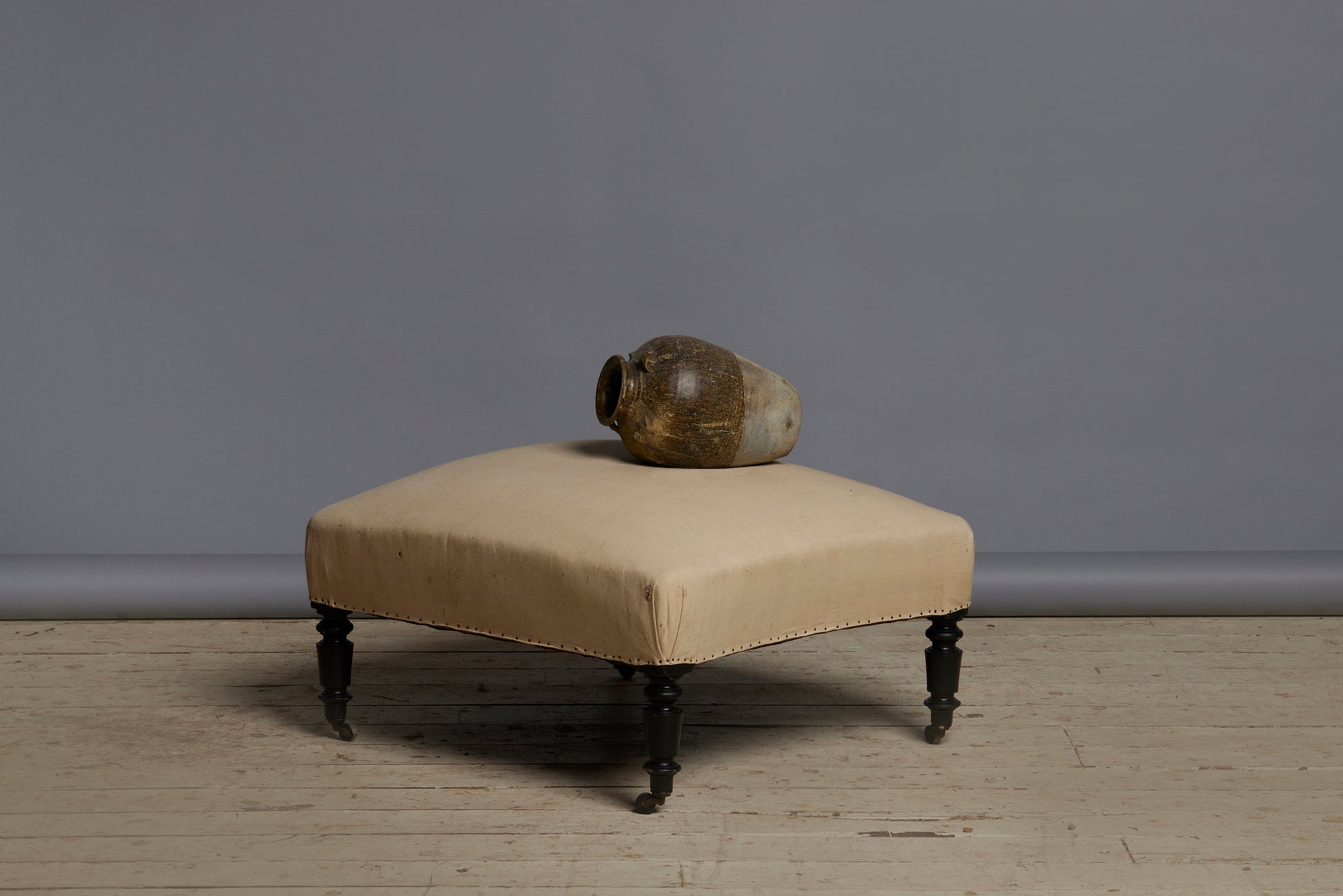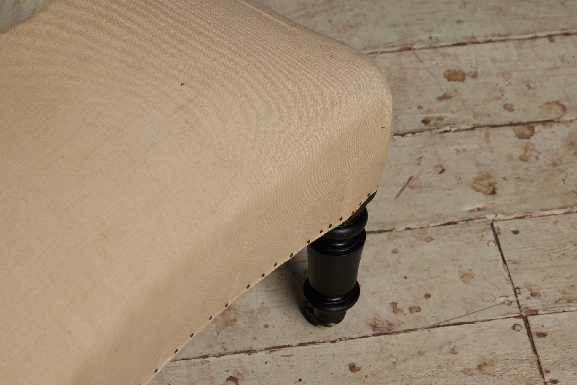 19th Century French Shaped Ottoman with Turned & Ebonized Legs