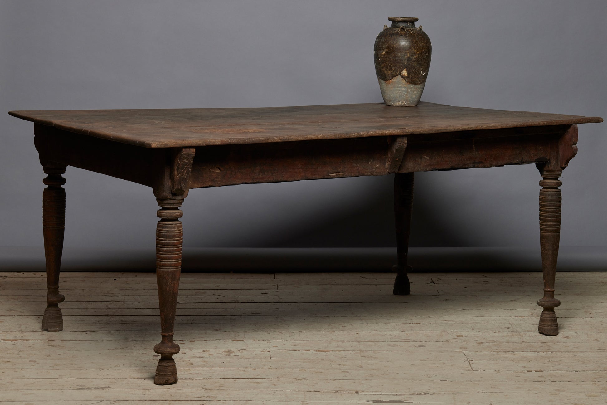 19th Century Turned Leg Natural Finish Teak Dining Table with Small Bracket