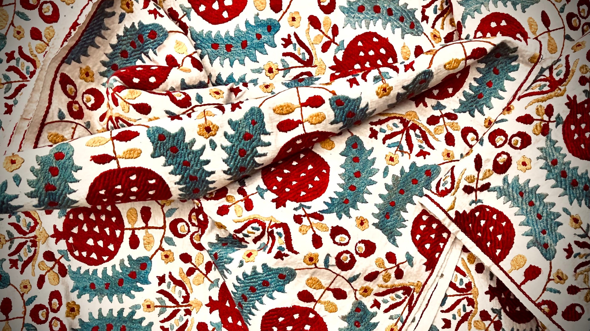 Classic Hand-Embroidered Pomegranate Motif Extra Long Suzani Runner