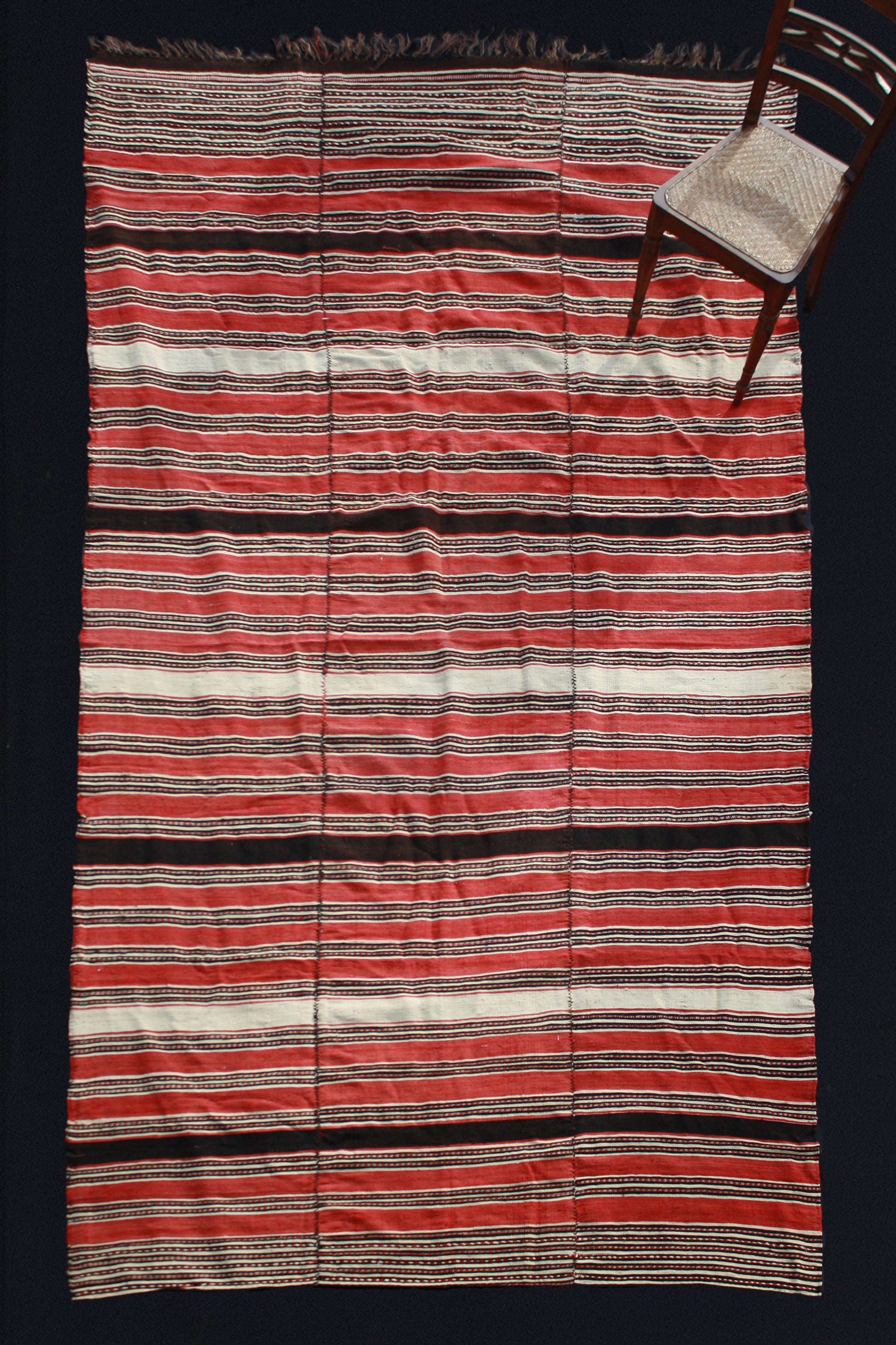 Large Anatolian Carpet with Red, Black and Cream Stripes