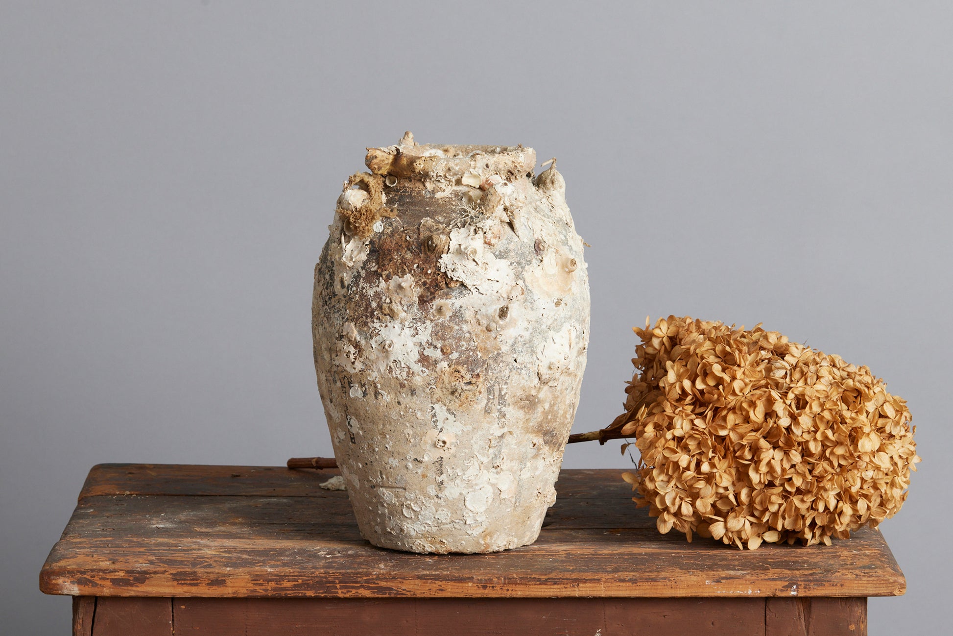 Narrow Tsung Dynasty Brown & White Shipwreck Storage Jar with Shell Encrustations