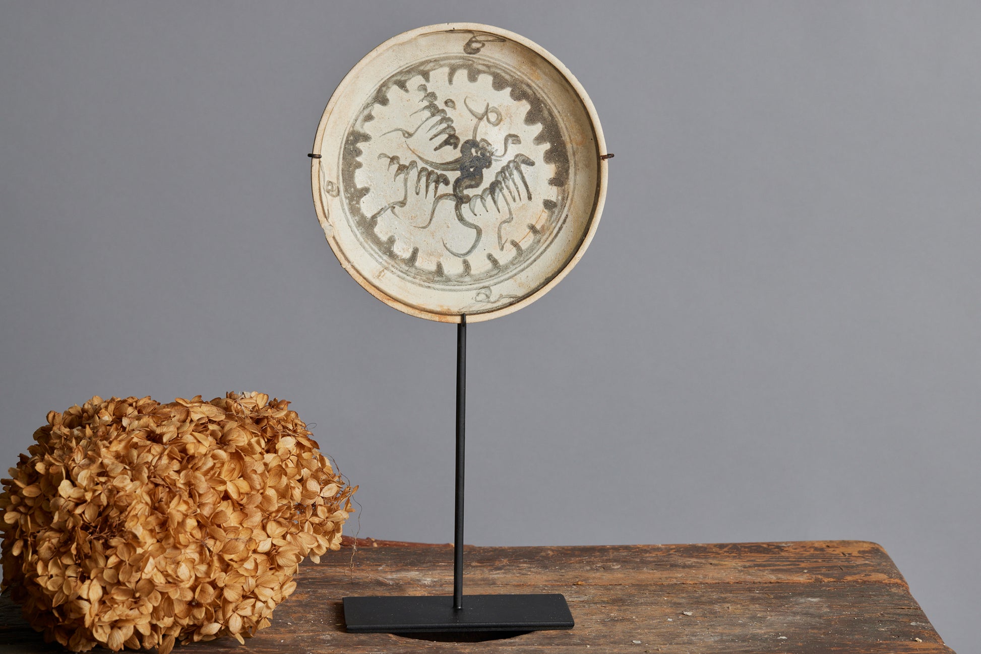 Shipwreck Blue & White China Trade Plate on a Stand